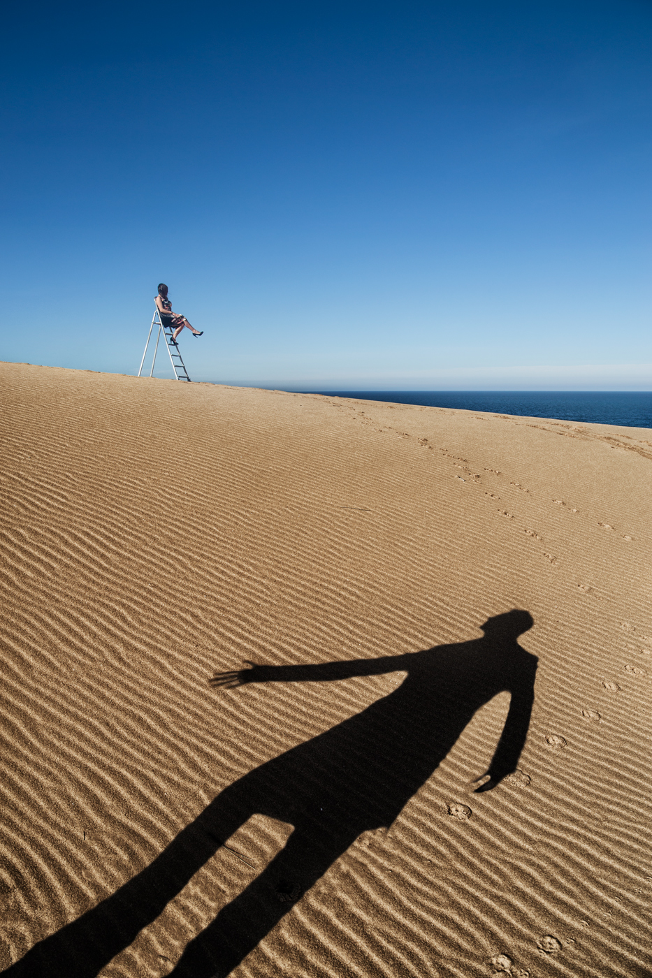 Originale e ben pensata nel concetto di fondo. Il fotografo è dentro lo scatto ed ha un ruolo determinante nella riuscita complessiva. I colori sono bellissimi e il contrasto fra il giallo/marrone della sabbia e l'azzurro del cielo vale già il prezzo del biglietto.