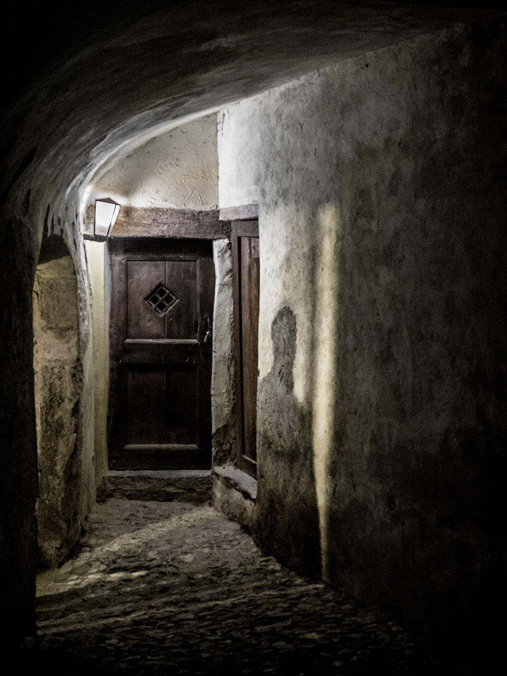 Inusuali le forme di questa semiarcata, forse l'interno di una fortezza, un vicolo di un antico borgo...altro... è l'aspetto old di questo angolo che cattura, la luce fioca e quell'ombra che scruta.