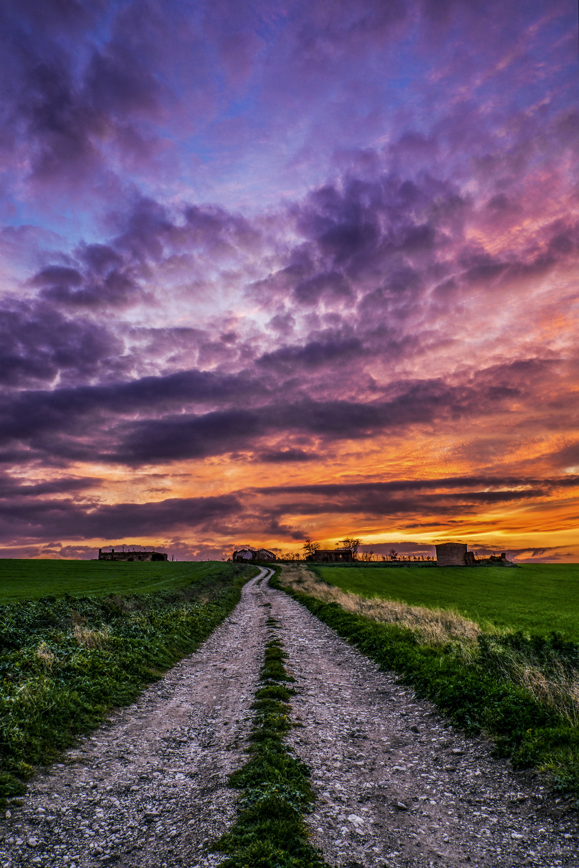 Bello stacco con contrasto netto tra colori caldi e freddi e con una strada che ti ci fionda dentro … mi piace!