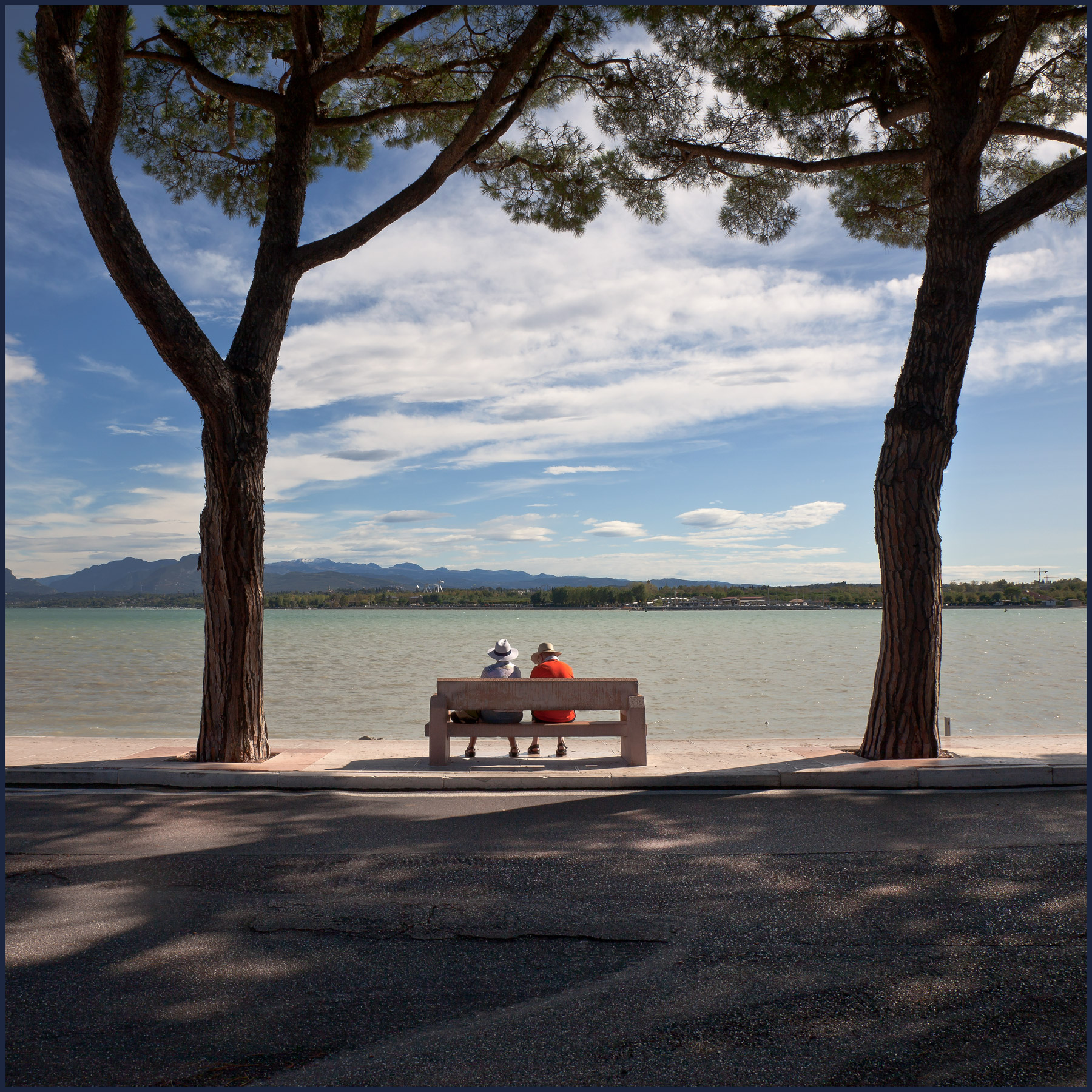 Franco carissimo ti ringrazio per le le righe che hai scritto. Erano due signore probabilmente straniere che si stavano riposando dopo una passeggiata sul lungolago. Mi ha colpito il cappello che indossavano ed il maglioncino rosso della donna a dx. Per un momento mi è sembrato di essere a teatro con gli alberi a mò di sipario , la sala in penombra e la panchina sul palcoscenico, una visione sospesa come in attesa che le attempate attrici iniziassero a recitare.