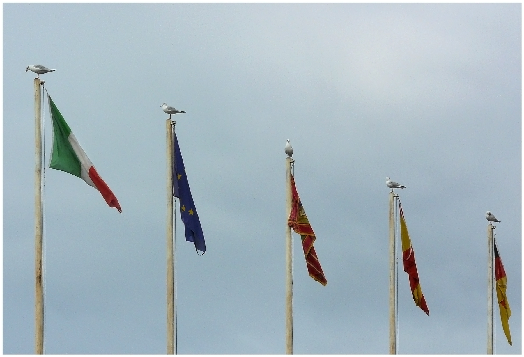 Un convegno di gabbiani provenienti da vari paesi che subito hanno riconosciuto i loro colori! Simpaticissima immagine,ottima street,la conservo tra le preferite. Ciao,Sergio.  _________________ Sergio Demitri https://www.flickr.com/photos/124946035@N02/ |