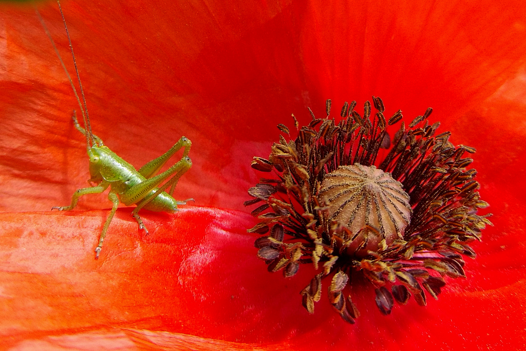 Unico rammarico per le antenne pizzicate, per il resto una bella foto, bello il contrasto cromatico tra papavero e il suo ospite...discreto dettaglio.