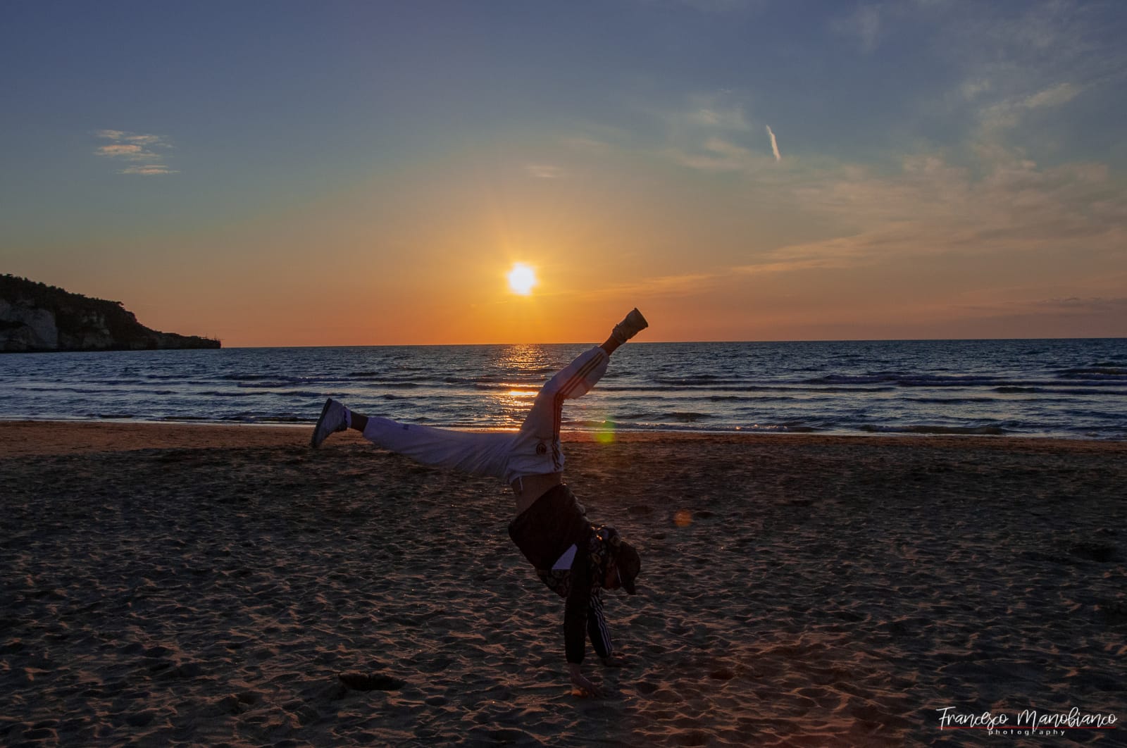 Buona l'idea del sole tra le gambe dell'acrobata e buona anche l'esposizione. A mio avviso il tempo di scatto utilizzato doveva essere leggermente più breve. L'immagine pende verso sinistra. Ciao