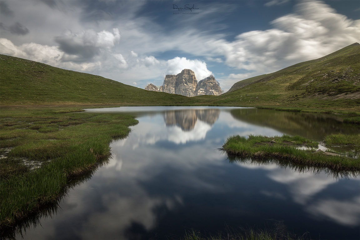 Stupendo paesaggio. Il Pelmo là in fondo dà maestà alla delicatezza dei pascoli di Mondeval. L'acqua qui aiuta molto a creare una splendida immagine. Anche io, a mio gusto, non avrei inserito quell'erbetta alla base. Ciao, Francesco _________________ Fotocamere Olympus OMD e PEN, Panasonic G3. Software GIMP