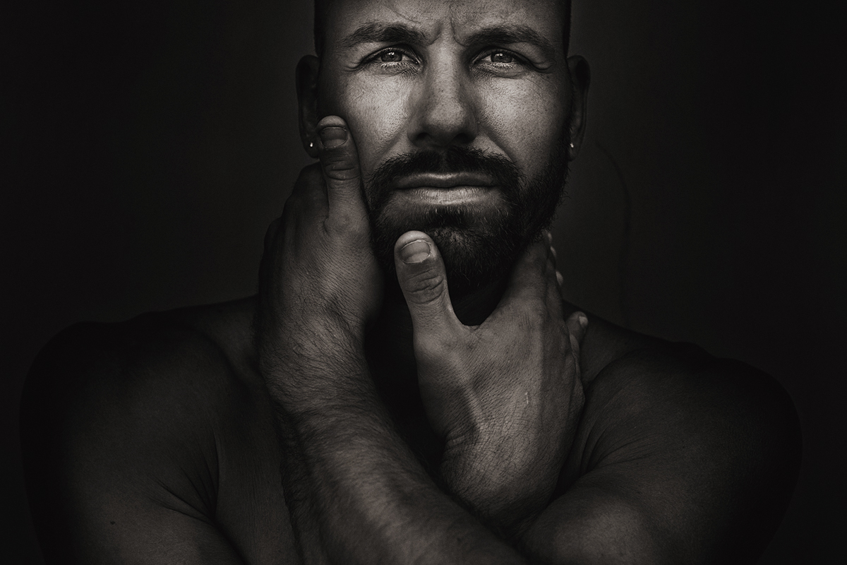E' stupenda nel movimento del corpo.la sua fisicità marcata che si mostra in queste braccia che si avvolgono, in un abbraccio che si trasforma in una presa forte, un intreccio che ci guida sino al viso, che emerge delicato e forte insieme. Un senso di protezione, ma anche una resa impotente davanti a sensazioni intense che catturano,lettura veicolata forse dal ruolo importante che assumono le mani, così presenti, coprotagoniste della storia insieme al viso. Bello il bn, corposo e ricco. Avrei clonato quel ''filo '' che corre giu tra l'orecchia e la spalla a dx e son indecisa anche sugli orecchini. Una proposta bellissima,la metto tra le preferite.