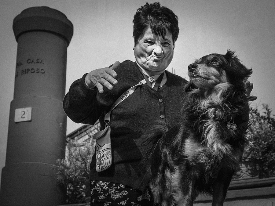 Per i miei gusti il trattamento del BN dona troppa enfasi al volto della signora a discapito del resto (basta guardare la mano della signora e il muso del cane, davvero troppo grigi...).