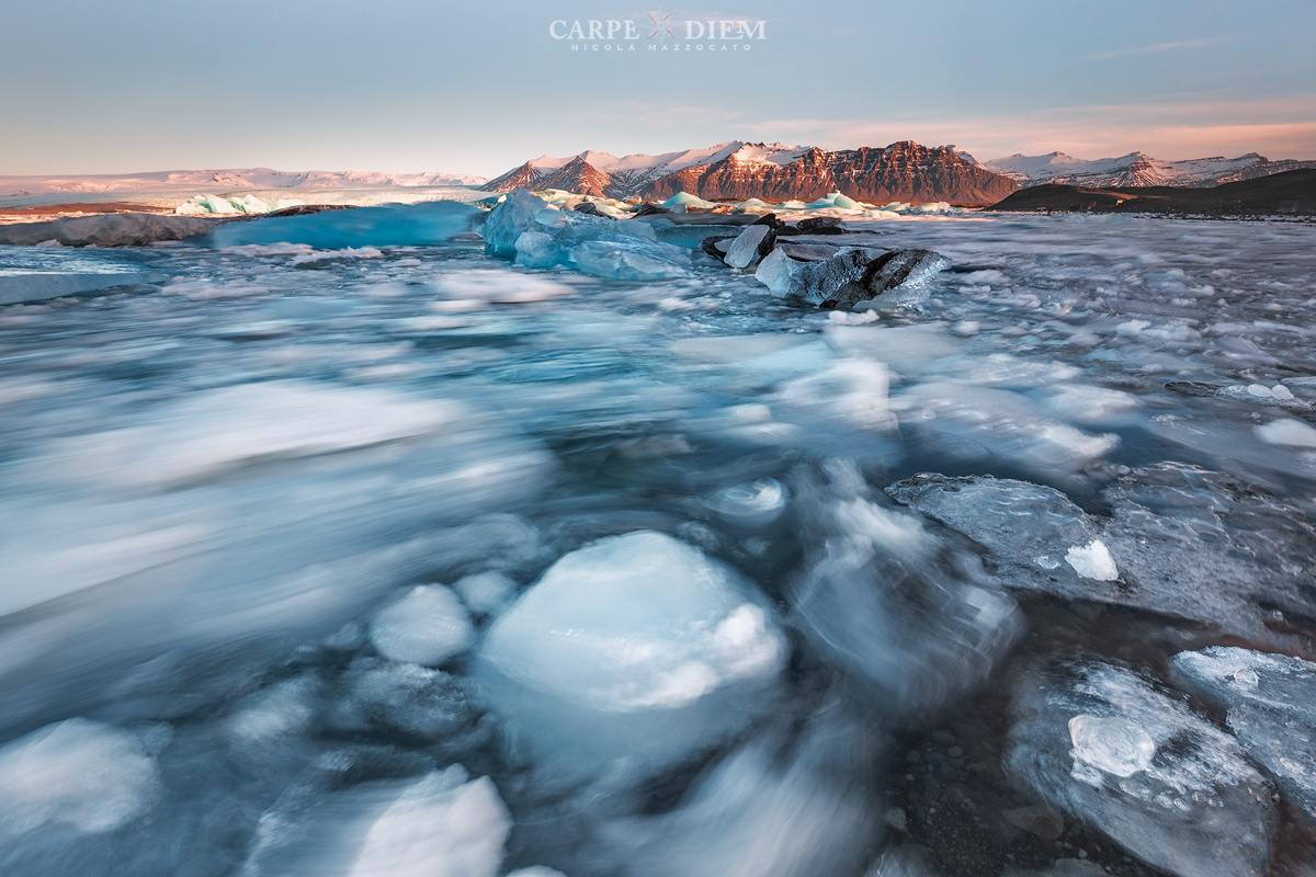 Molto suggestivo questo scatto che gioca sulla contrapposizione di cromie calde-feedde e sul fermo-in movimento del ghiaccio. Ciao e complimenti Ciao