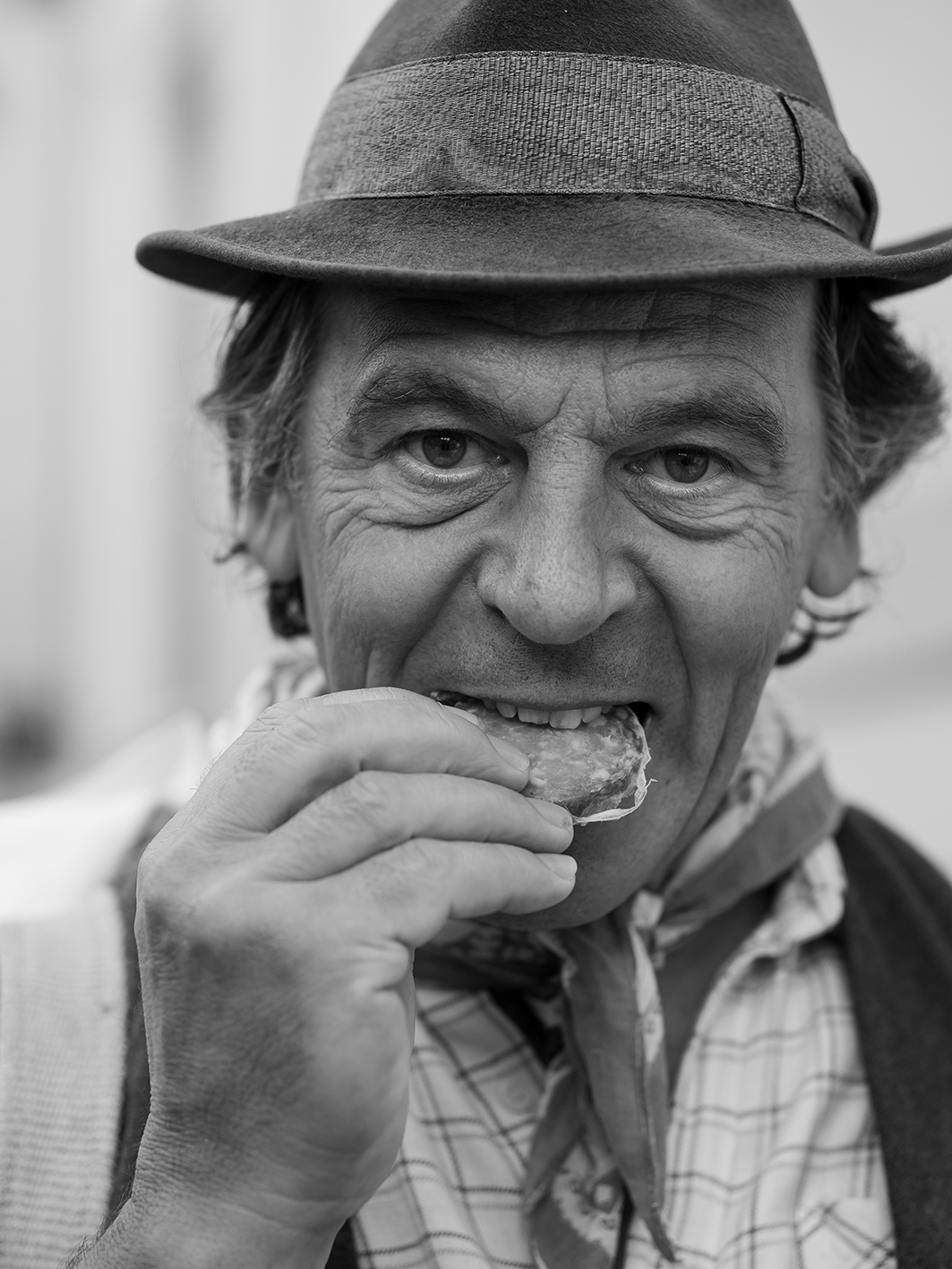 Niente male questa cattura. Un momento genuino, un ritratto che oltre che sui gesti si regge su questo sguardo diretto, magnetico.. un ritratto che ha qualcosa da raccontare per me.. un appunto solo sul taglio, il cappello spuntato mi distrae parecchio e sulla resa del bn,dove mi mancano un pochino i bianchi. Una buona prova  _________________