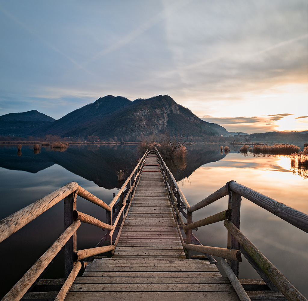 ciao,a parte il problema alte luci,l'uso del formato quadrato ti si ritorce contro poichè la parte iniziale del pontile finisce per essere troppo presente nel fotogramma,lo sguardo dopo averlo percorso e non trovando nulla di particolarmente interessante torna alla parte in primo piano trovandola troppo statica (per me ovviamente)