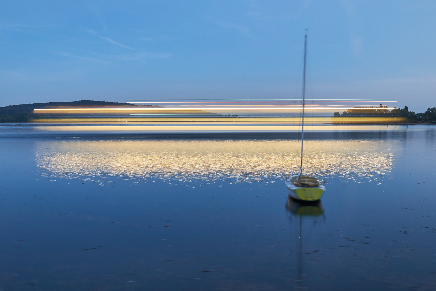 Stava passando un battello molto luminoso e ho messo un tempo di scatto in modo da catturarne la scia luminosa Ok!