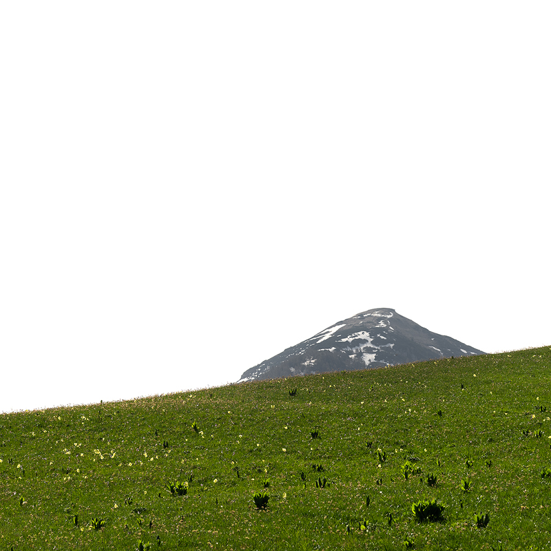 Ti ringrazio molto per la bella lettura Marco e soprattutto per aver colto un mio processo di ricerca in via di definizione senza che questo venisse esplicitato. Al momento dello scatto quello che volevo rappresentare erano una linea ed un cono. La “bruciatura” del cielo diventa quindi funzionale all’esaltazione delle forme che purtroppo non staccavano troppo tra loro per via dei toni troppo simile. L’idea era di rappresentare una transizione dal bianco del cielo, al bianco a chiazze della montagna ai puntini chiari dei fiori nel verde in un’ideale transizione dall’inverno alla primavera. Ho lavorato un po’ su una versione in bianco e nero che però non mi convinceva del tutto.