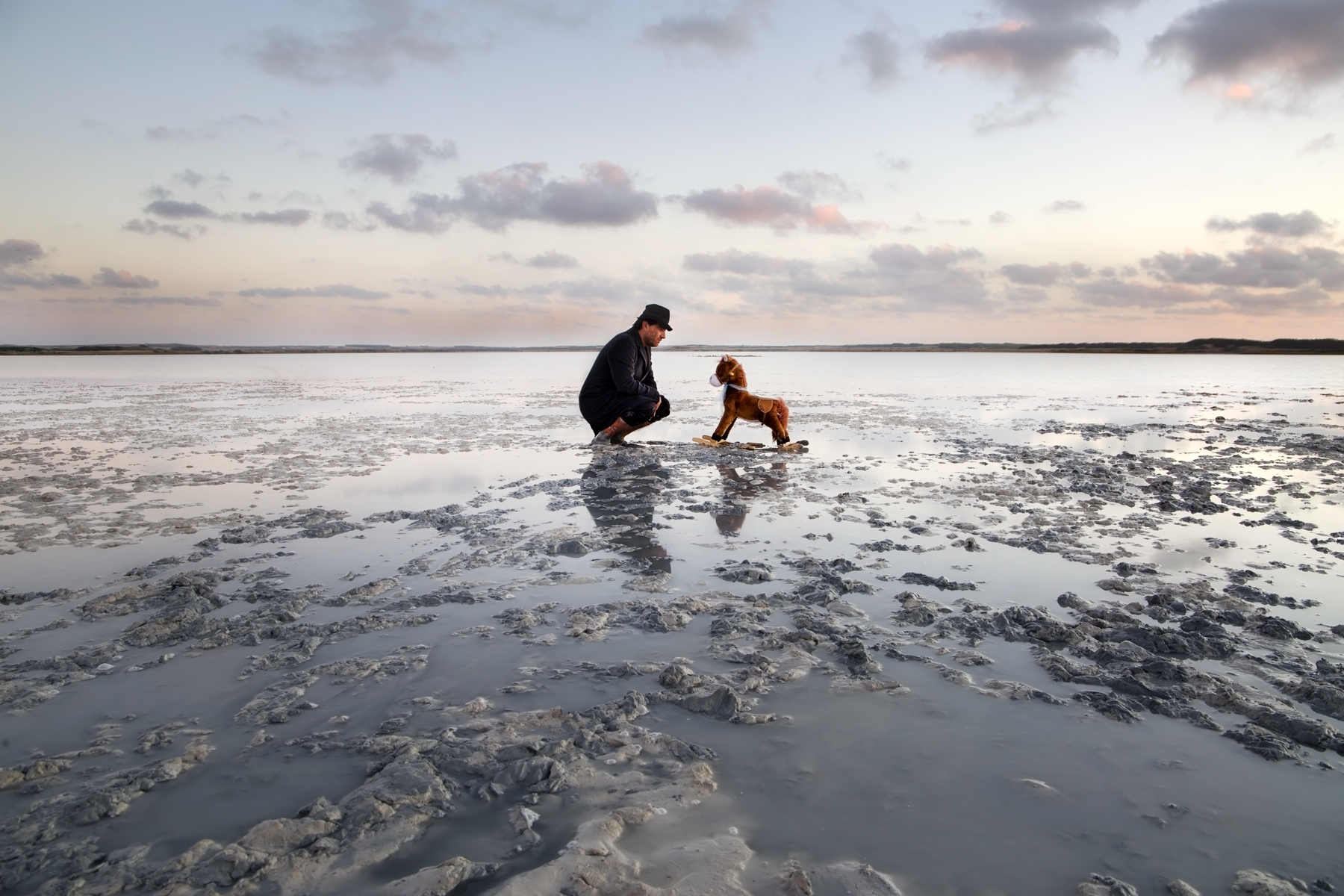 Per me questa è nella top ten delle tue.. mi ha colpita un sacco appena l'ho vista...certo è straniante, fa pensare.. come ogni tua immagine...ma c è una dolcezza di fondo che la rende quasi una fiaba... delicata nella storia, nei bellissimi toni, nell'ambientazione...questa volta la location ti ha regalato il meglio di se, colori tenui,riflessi preziosi,fanghiglia che disegna un mondo di fantasia insieme alle nuvole... e come hai composto hai dato enorme profondità alla scena.