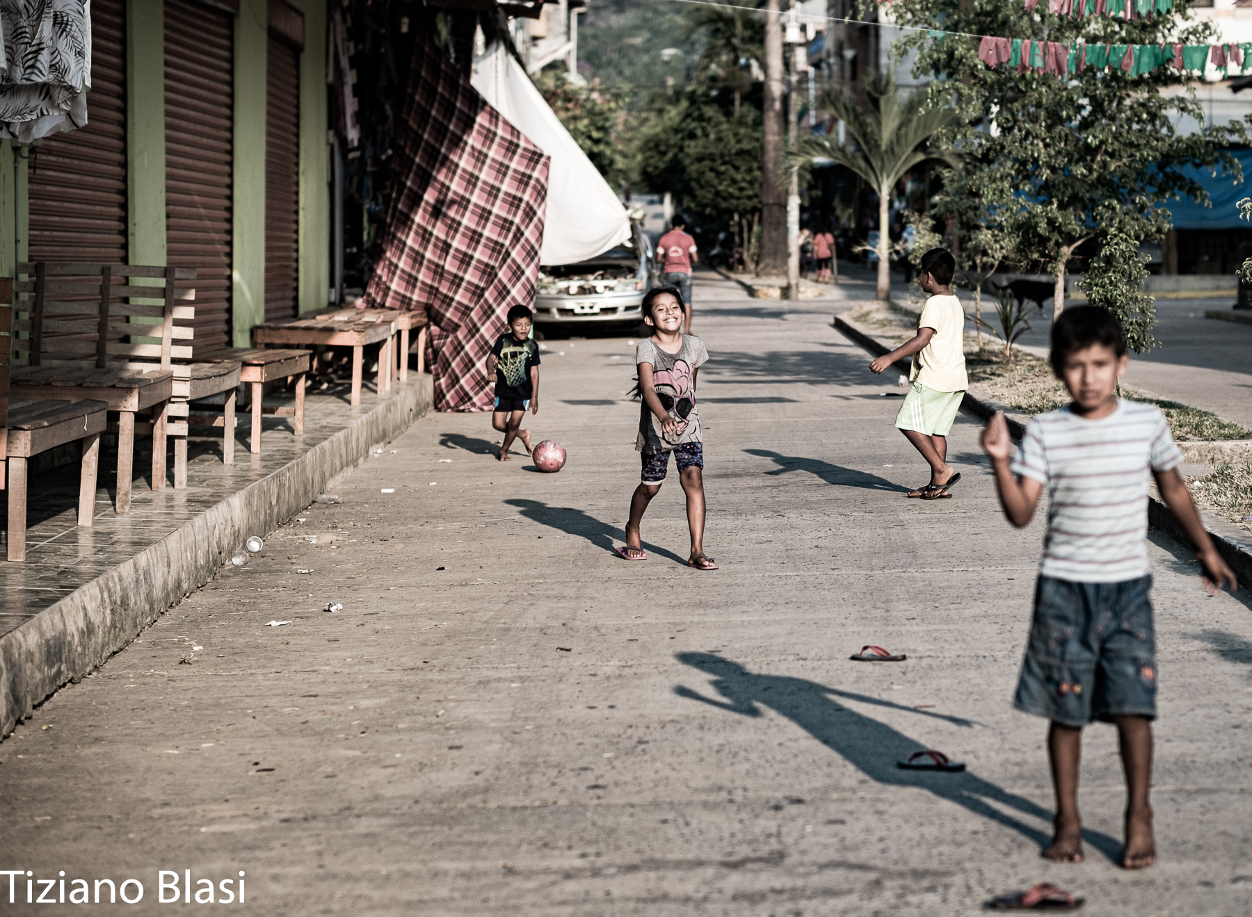 Inoltre la scena è molto ricca di elementi, con uno sfondo che crea un po' di disturbo, e la percezione che ho è quella di un occhio esterno e indiscreto, poco dentro l'azione: prova ne è la posa del ragazzino in primo piano, che sembra aver "fulminato" il fotografo!