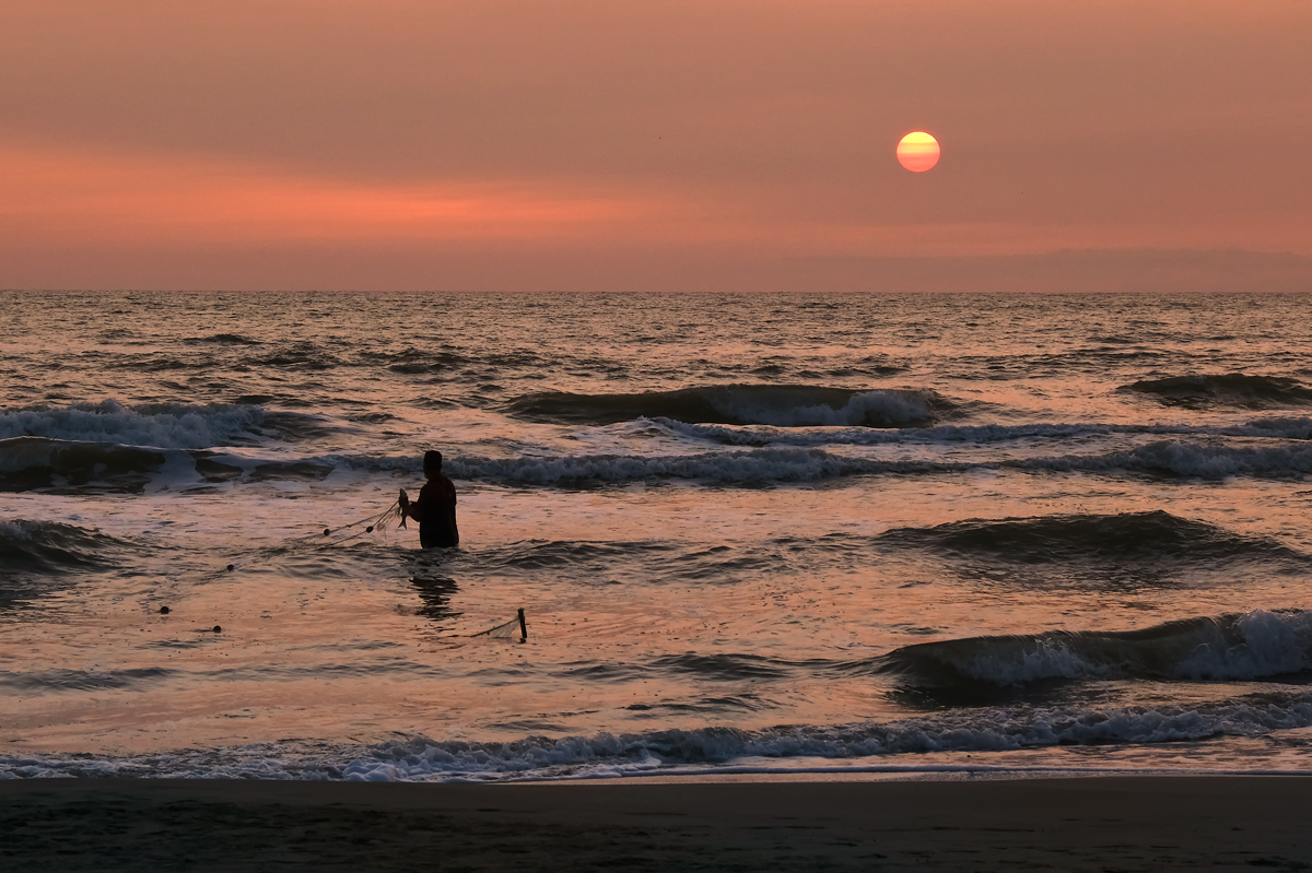 Noto una leggerissima pendenza verso destra della linea dell'orizzonte.