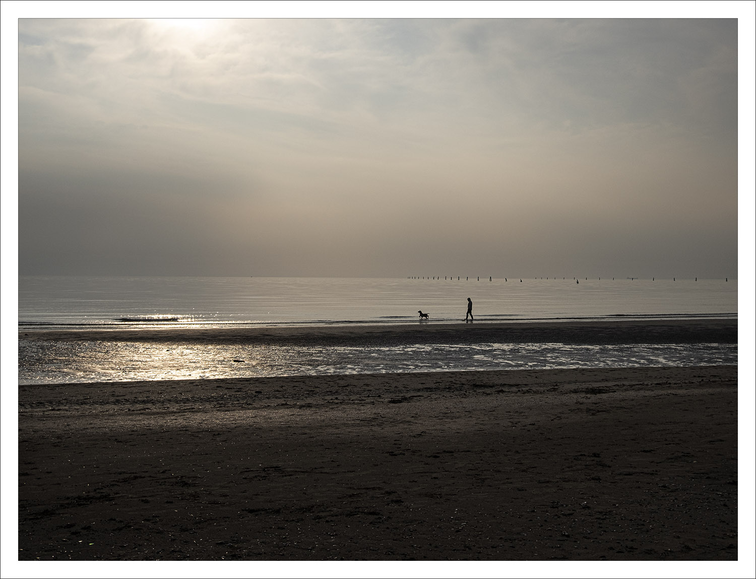 Bella immagine, molto d’atmosfera… Belle le silhouette di uomo e cane che passeggiano sulla riva in una giornata dai toni freddi… Mi sarebbe piaciuto anche un taglio più stretto, con meno sabbia in basso e un po’ meno mare a destra.