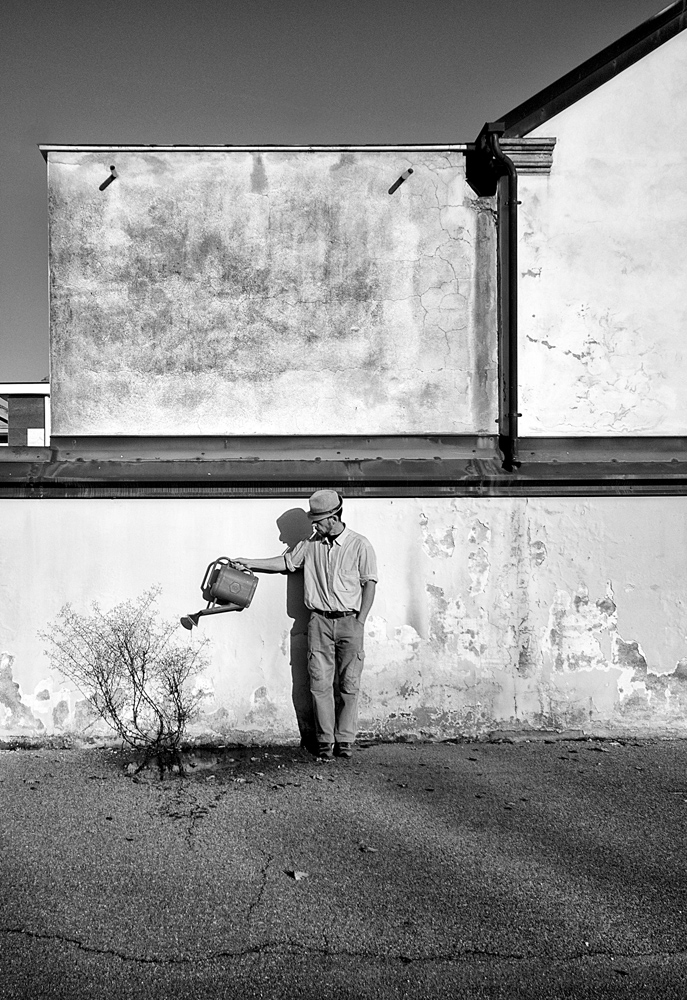 Credo che innaffiare sia un gesto di speranza e ottimismo. Oppressi dai pesanti schemi geometrici possiamo affidarci alla natura, capace di sovvertire ogni velleità umana.