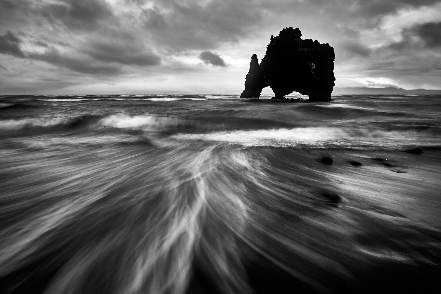 Bello l'effetto dell'acqua in primo piano, complimenti per la scelta del b/n... ottimo scatto. Ciao