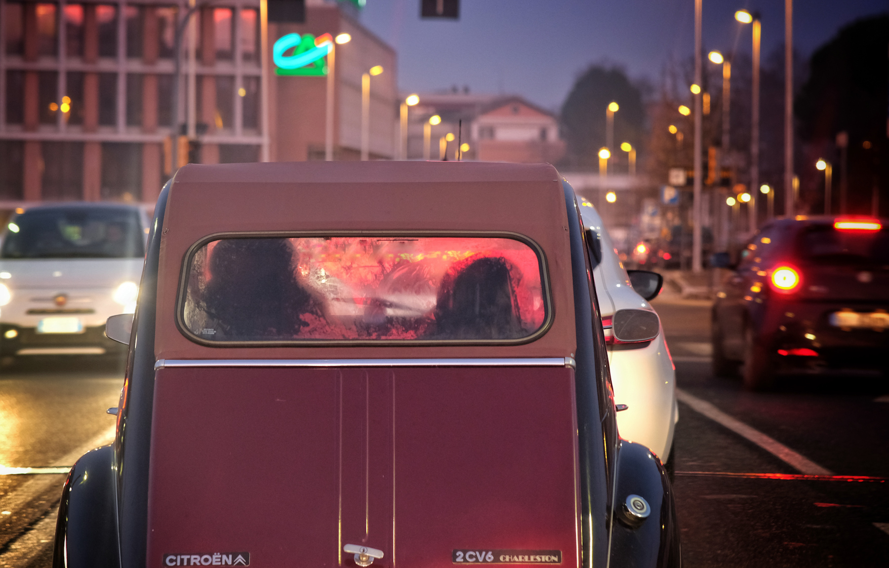Oltre al piacere di rivedere un’auto simbolo di un’epoca e diventata un mito per intere generazioni, devo dire che trovo l’immagine molto gradevole per composizione e soprattutto per la tonalità bordeaux che la pervade interamente
