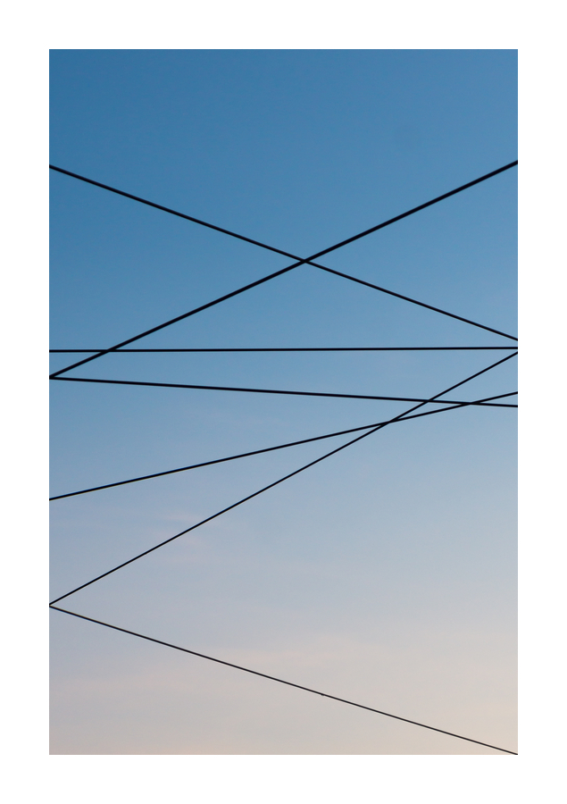 mi piace molto questo zig-zag dei tiranti in un cielo rosa-azzurro. Molto elegante