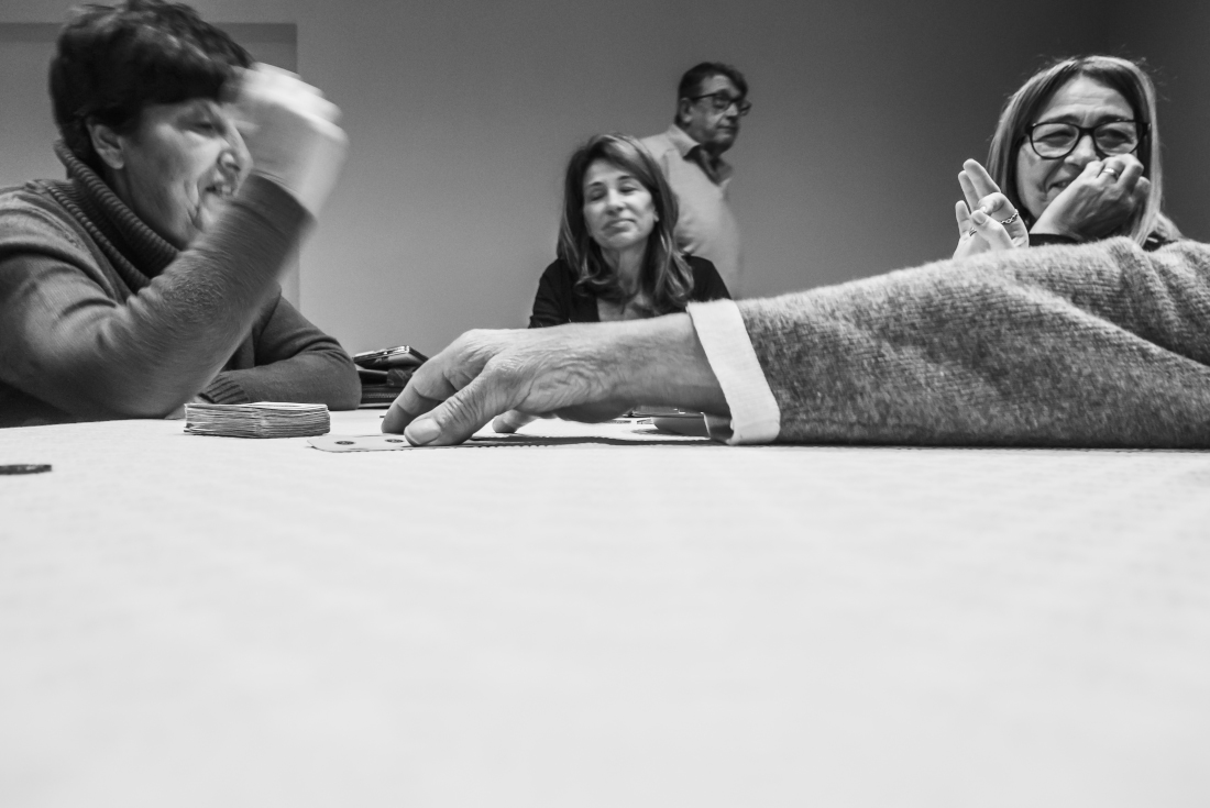 Un fantastico punto di ripresa sostenuto da una originale ed interessante composizione.Belle le espressioni dei giocatori ed i gesti,come quel braccio che si allunga sul tavolo.Mi piace molto e la conservo tra le preferite. Ciao,Sergio. _________________ Sergio Demitri  https://www.flickr.com/photos/124946035@N02/ |