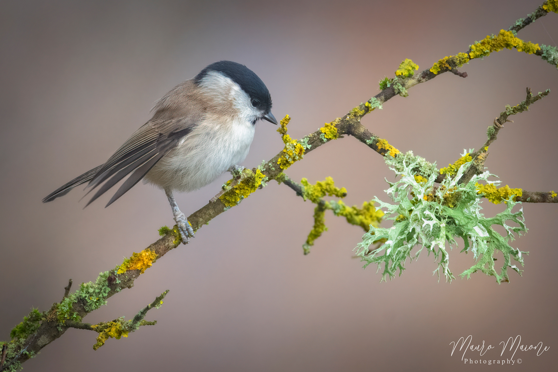 Una buona immagine, ben composta e bilanciata nei volumi... il lichene controbilancia giustamente alla cincia.