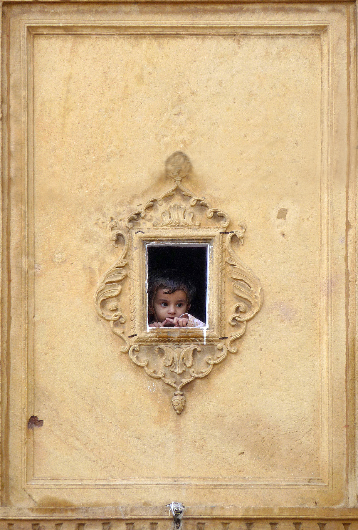 Domanda. Manca qualcosa in un’immagine tanto semplice? No, direi che c’è tutto q1uanto serve: parete, finestra, bambino. Altra domanda. Non è tutto troppo centrale? No, quello che conta è il bambino che si affaccia dalla finestrella. Perché metterlo lateralmente? Avrebbe apportato qualche sorta di guadagno estetico? No, non direi. Il bambino è unico elemento di interesse ed unico elemento nel fotogramma. Il suo guardare dalla finestrella è la sola azione. Deve e vuole essere centrale perché deve arrivare subito. Che bella questa fotografia; tre soli elementi: bimbo, finestrella, muro. Eppure da soli costruiscono ordito e trama della fotografia.