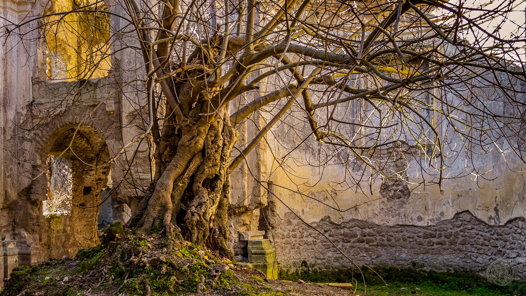 Molto suggestivo questo angolo con l'abero muto testimone di chissà quali avvenimenti viste le retrostanti rovine. Pregevole la luce calda e preziosa che li avvolge. Ciao  |