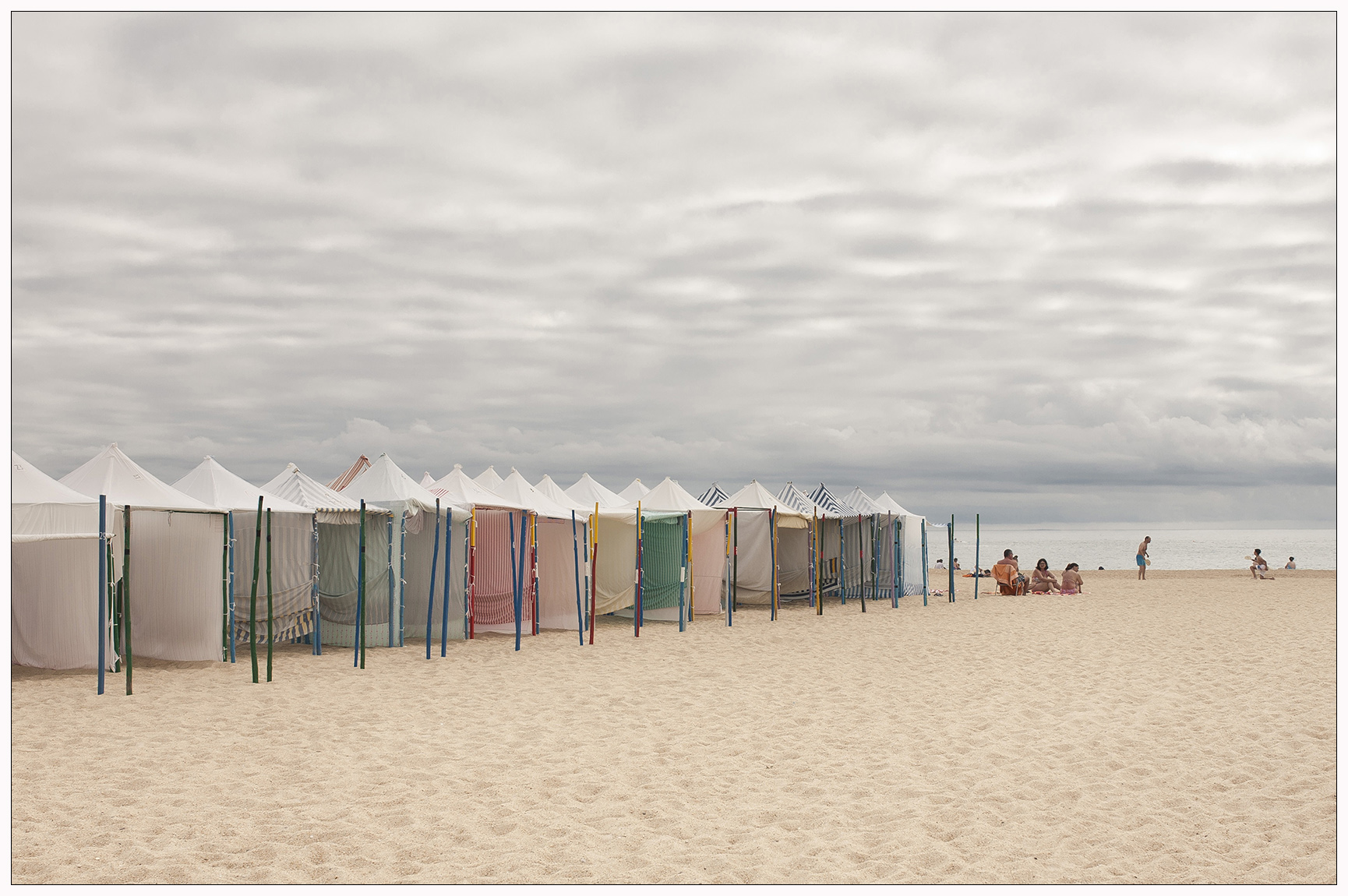 Un immagine delicata nei toni e nella resa dei gazebo e allo stesso tempo ben definita nella matericità della sabbia.