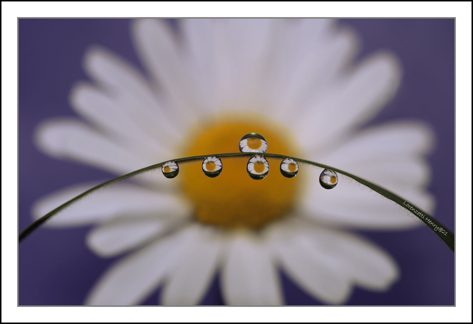 | Particolare il fiore sullo sfondo che si manifesta in ogni goccia. Un ottimo lavoro per una immagine molto bella |