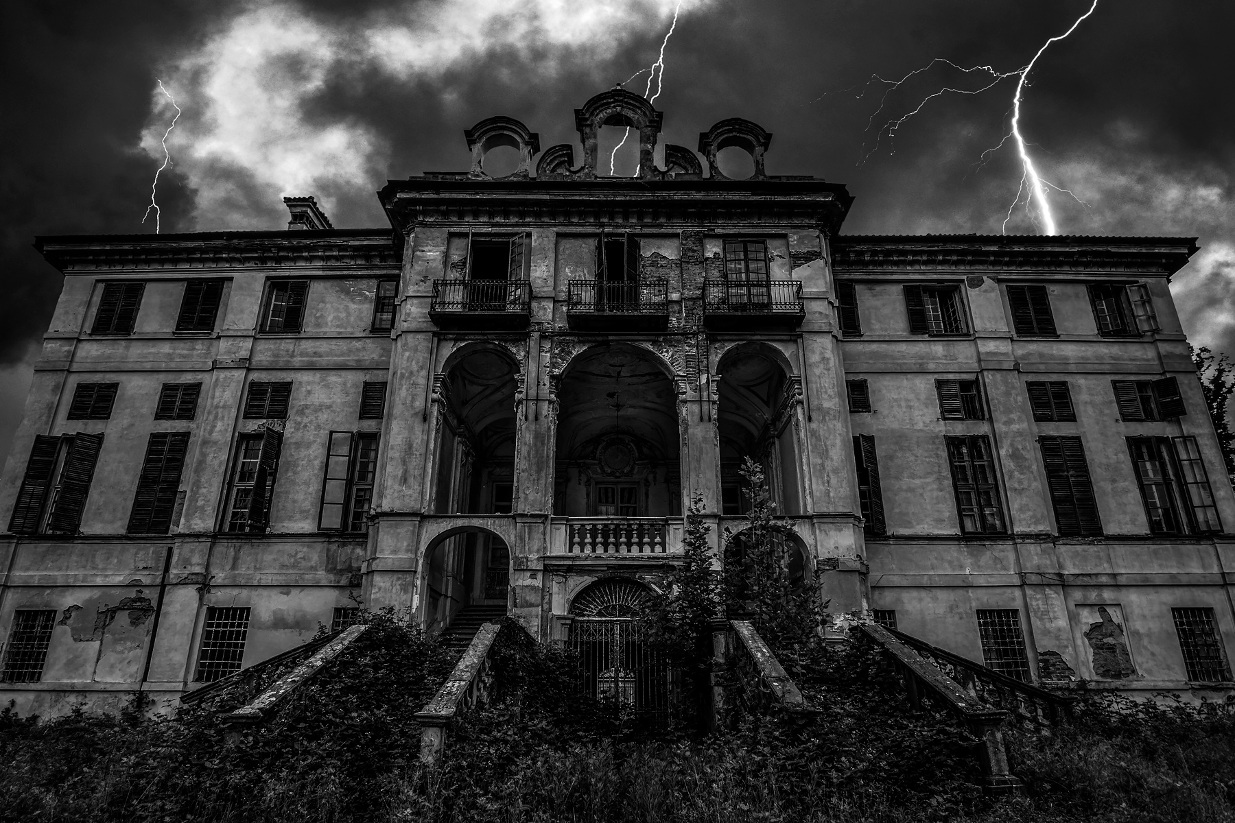 Costruzione tetra, con la vegetazione che rende inaccessibile l' ingresso, come una protezione da intrusi, non addetti ai lavori, che potrebbero disturbare le attività materico-esoteriche, praticate all' interno per padroneggiare le forze occulte della natura. Un ottimo lavoro, per una immagine dal forte impatto |