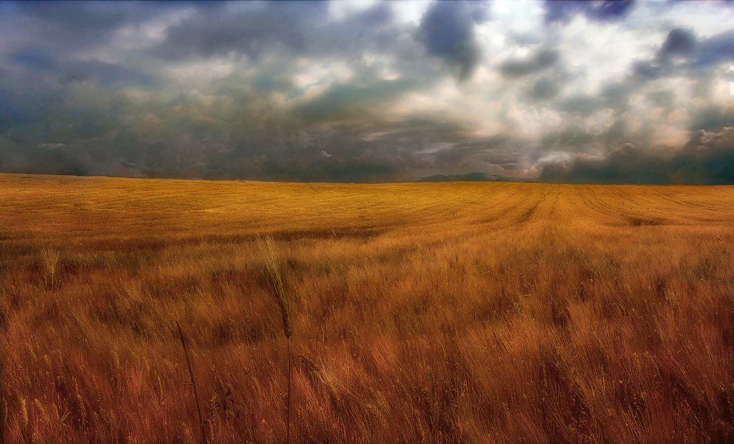 Mi fa venire in mente i dipinti di Turner… Bellissimi i colori caldi del grano in contrasto con quelli plumbei del cielo minaccioso… davvero una splendida immagine, complimenti di cuore.