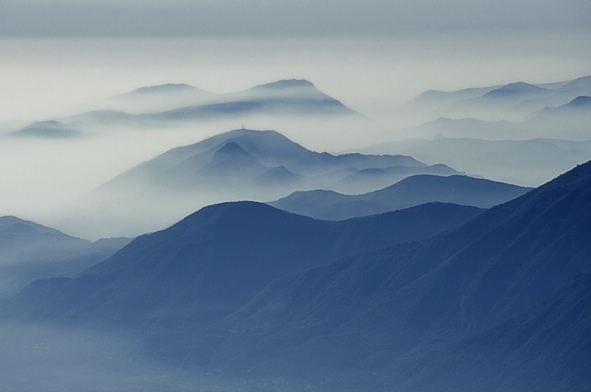 Dal Baldo volgendo lo sguardo verso il bresciano, specie in autunno inoltrato, si nota questo susseguirsi di vallate immerse nella nebbia fredda. E un gran bel vedere. Nella mia galleria ce ne una simile ripresa più o meno dallo stesso posto.