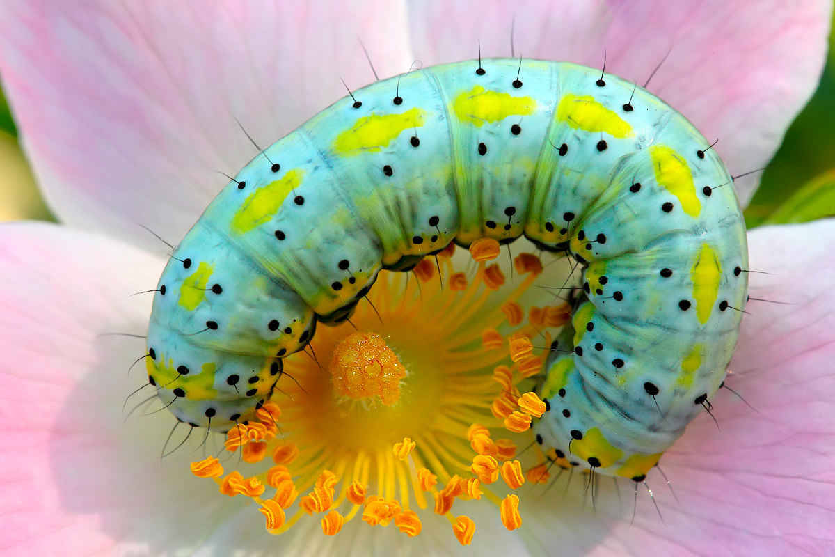 Ma veramente è così carino un bruco? Non l’avrei mai detto… Bellissimo l’accostamento cromatico e fantastica la definizione, complimenti!