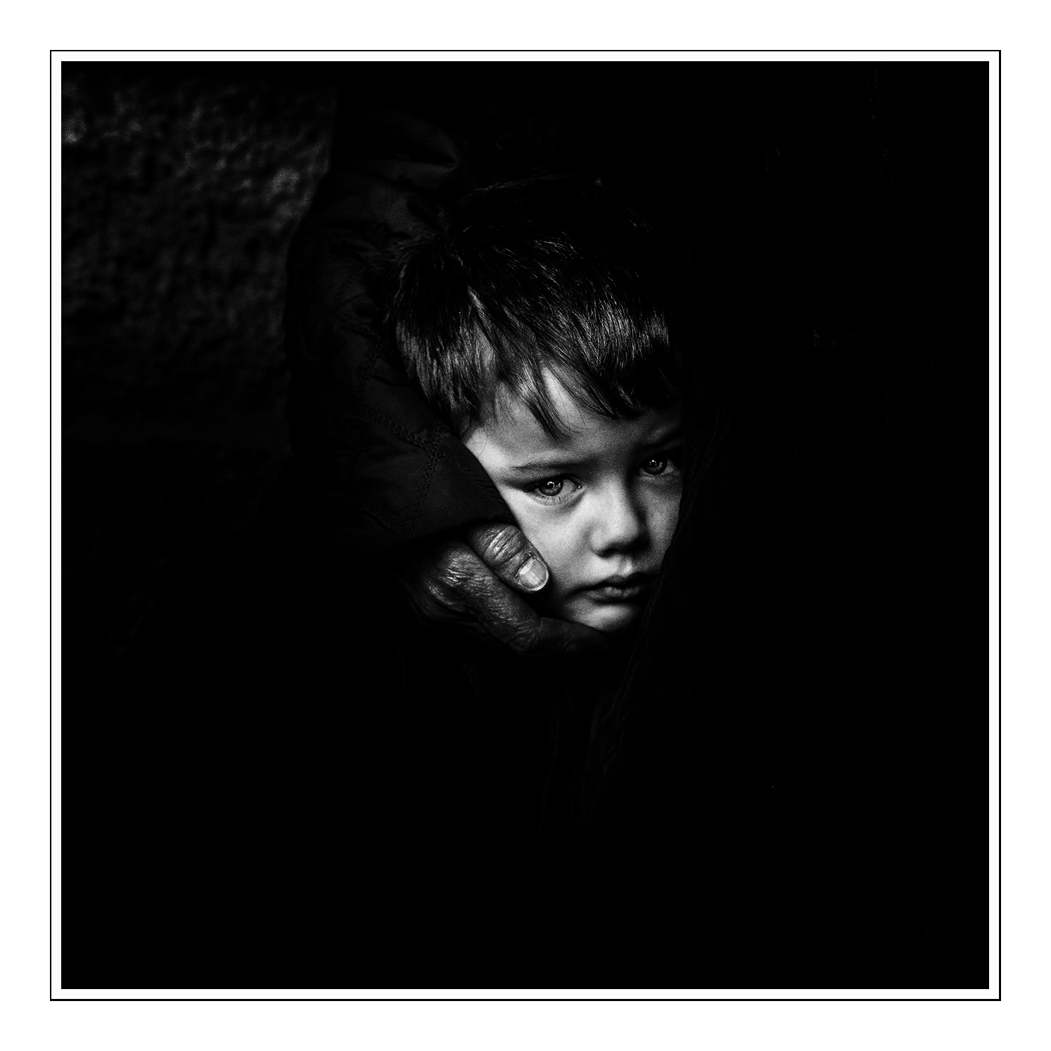 | Notevolissima l'espressione del bambino, almeno al primo impatto imbronciata e velata di malinconia. Determinante il ruolo giocato dalla mano, che gli tiene il visino, che fa pensare a protezione ed affetto. Ottimo il b/n ricco di nitidezza, ben scelto il taglio quadrato. |