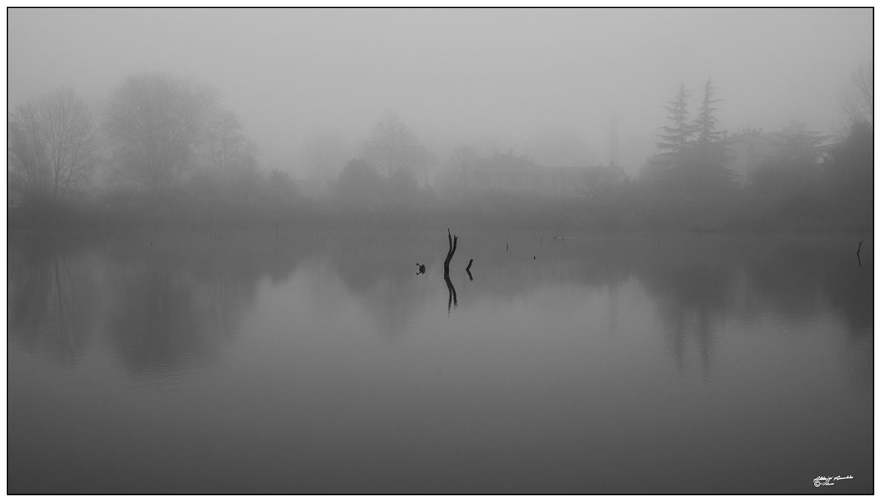 Un paesaggio che sembra dissolversi dove l'unica certezza sono i resti di un albero che protende i suoi rami per emergere dall'acqua. Molto bella  _________________ Massimo Facco