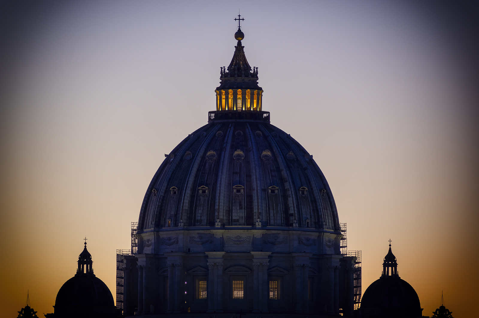 Belle le cromie e lo skyline, con le cupole laterali scure. La vignettatura porta a concentrarsi sul cupolone, già abbastanza visibile; a mio gusto non sta male ma forse se ne può fare anche a meno.