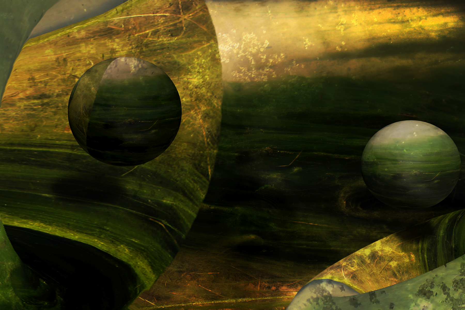È solo il fondo di un fossato pieno di alghe, poi ho giocato con il 3D di ps utilizzando sempre la stessa foto di base.
