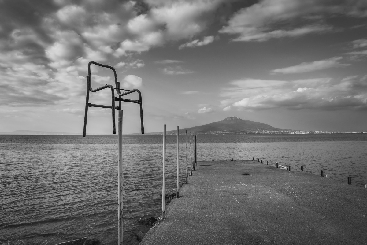 Mi piace come hai composto con la sedia che sembra appoggiare sulla linea dell'orizzonte per un effetto straniante e singolare.