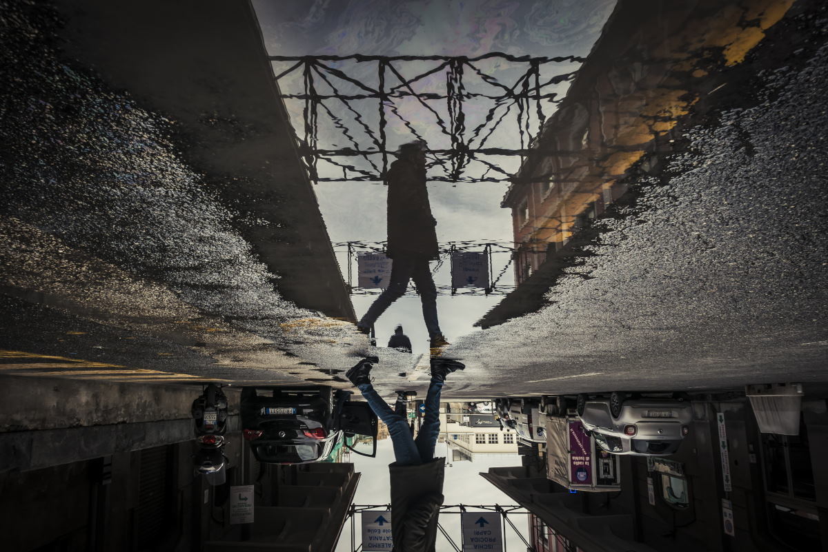 Bella immagine… Mi piace che nel riflesso, diventato parte principale, siano spariti tutti gli elementi laterali, concentrando l’attenzione solo sull’uomo Molto accattivante
