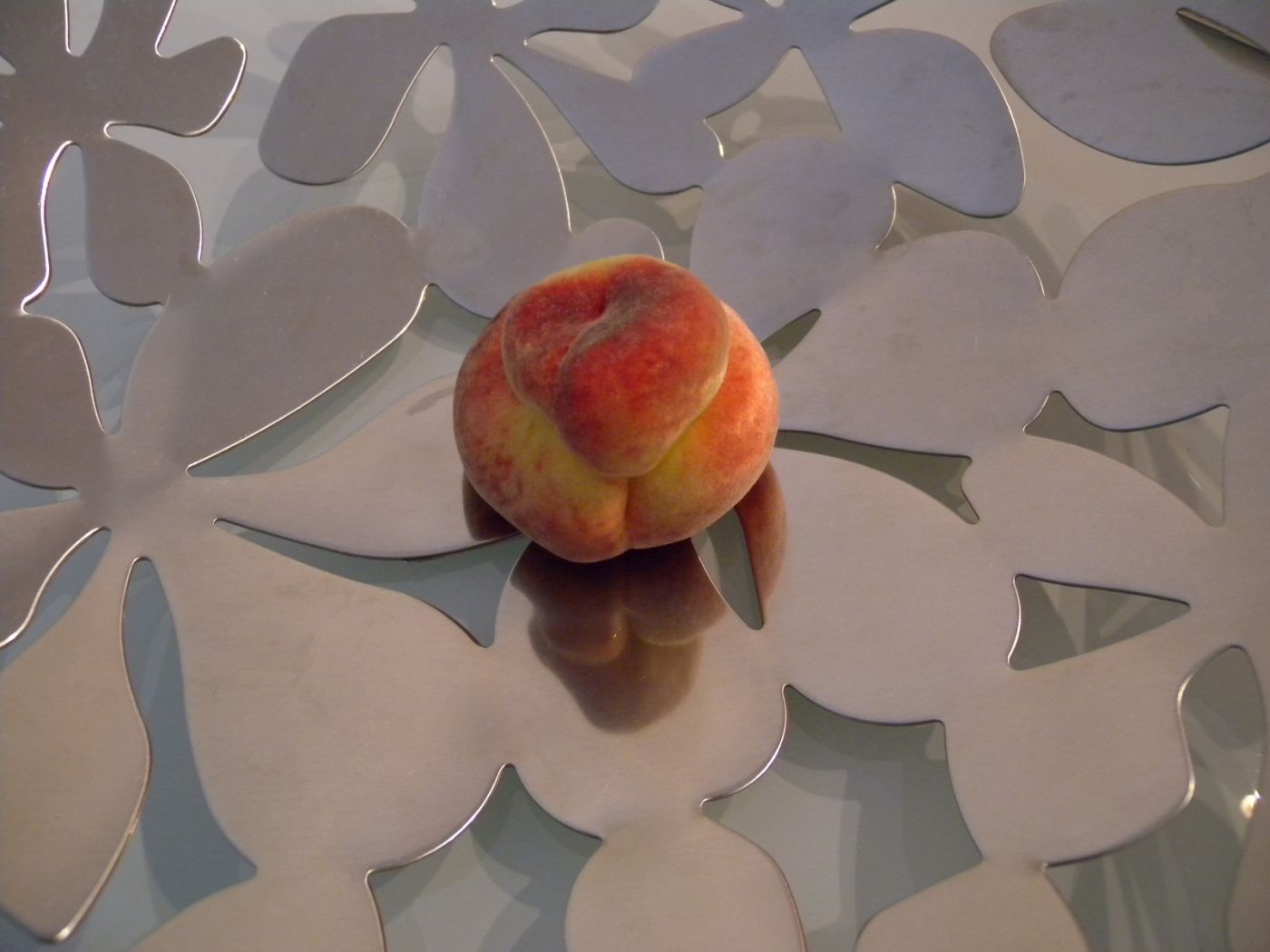 | C'è affinità fra le forme di questa particolare specie di pesche e il disegno a fiori del laminato su cui poggia. Il riflesso c'è ma non mi sembra il centro d'interesse più spiccato dell'immagine che invece vive di una buona armonia generale di forme e colore. Mi piace. Ciao, Tiziano |