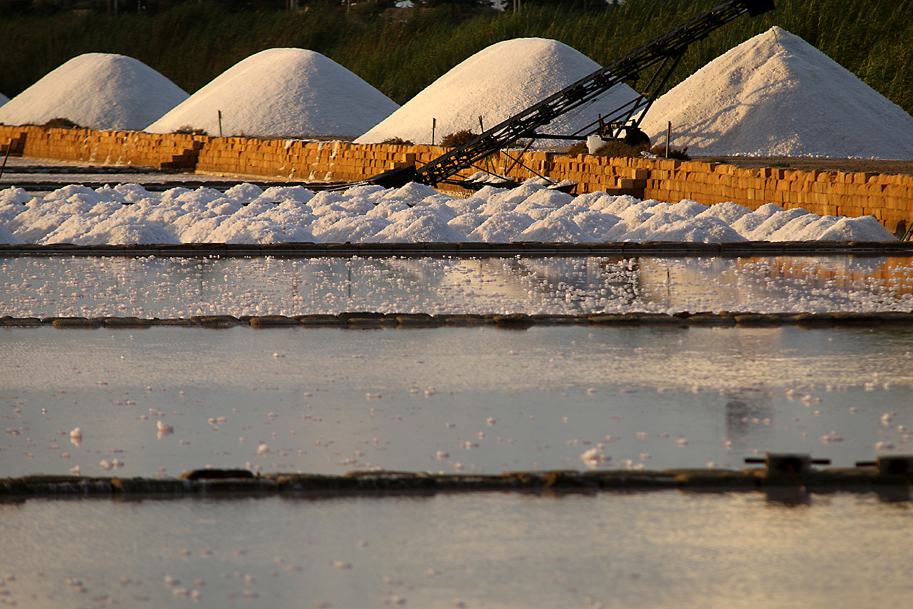 Bello questo approcciarsi visivo alle saline e ai mucchi di sale ad asciugare.