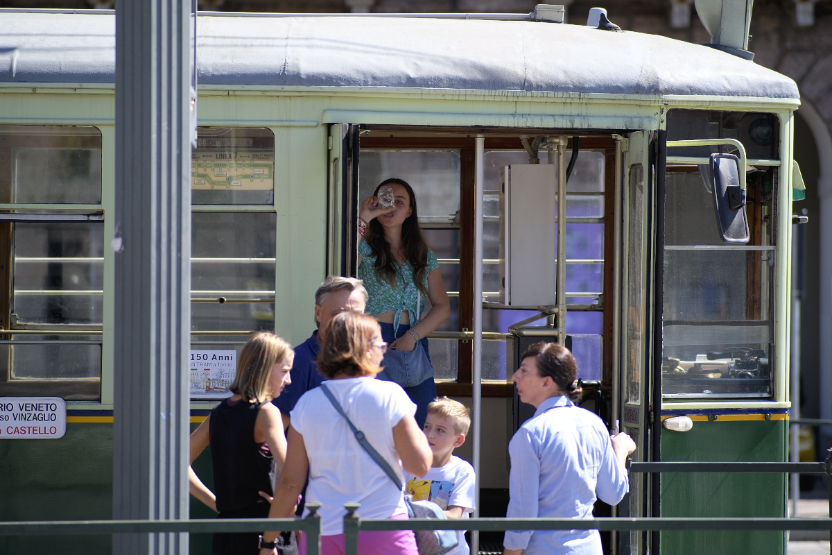 Il focus dell'immagine potrebbe essere la ragazza sopra al veicolo che beve dalla bottiglia, ma il tuo punto di ripresa diluisce troppo questo particolare. Quindi buona l'intuizione ma la realizzazione non la valorizza adeguatamente.