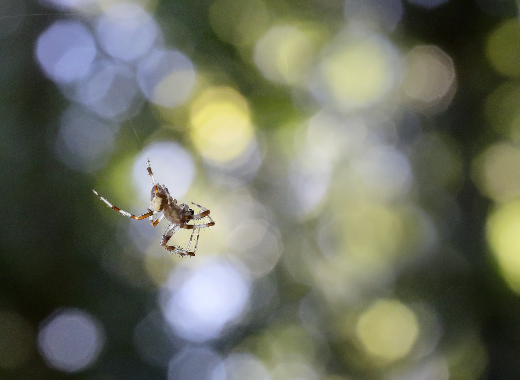 Grazie Pìerangelo, il ragnetto era sospeso in aria e stava facendo la tela, andava su e gìù velocemente e son riuscito a fermarlo solo così, impossibile qualsiasi posa, era anche molto piccolo circa 1 cm...per questo ho scritto preso al volo