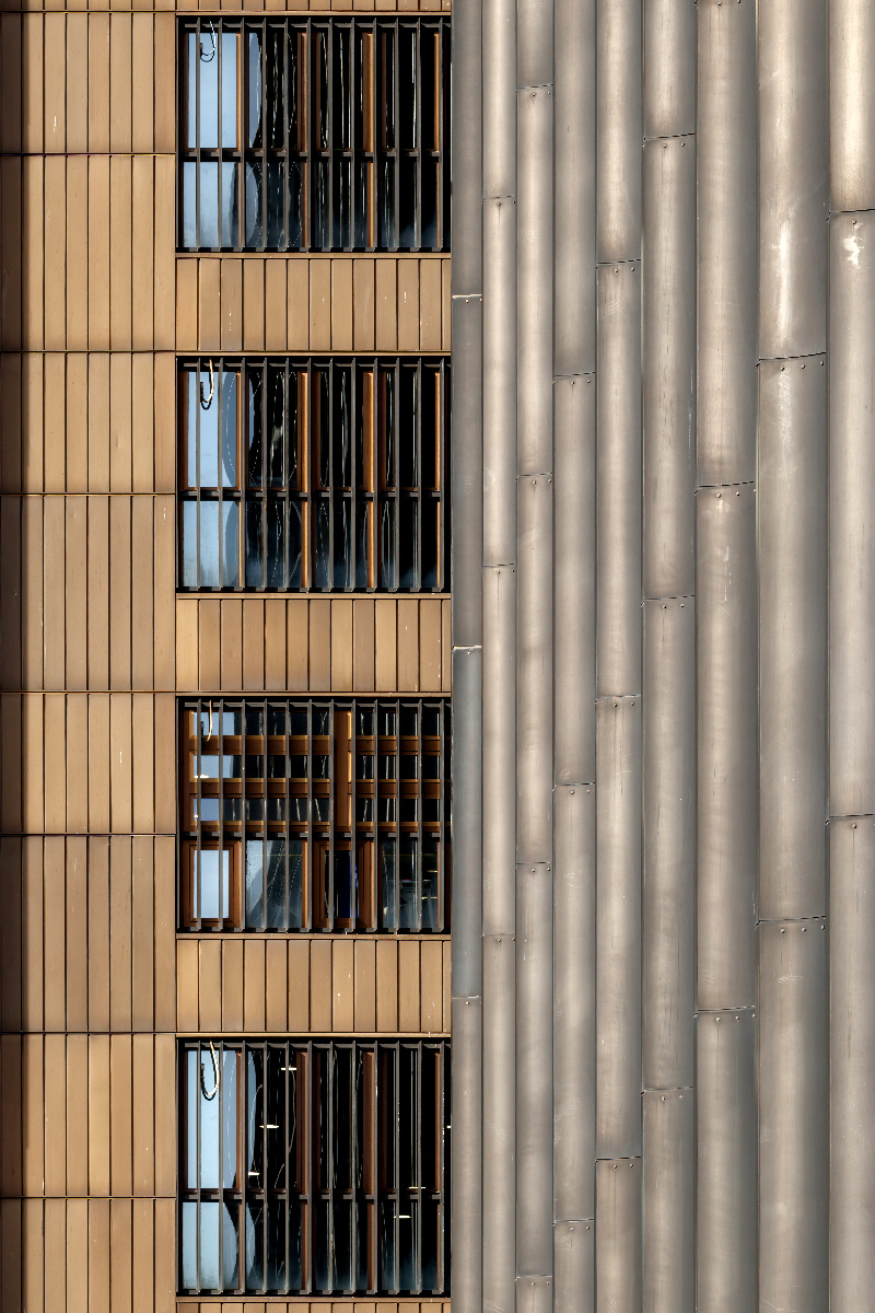 Inconsueta e bella per questo… Mi piace molto questo accostamento di verticali di diversi colori e materie, è un’immagine che si fa guardare