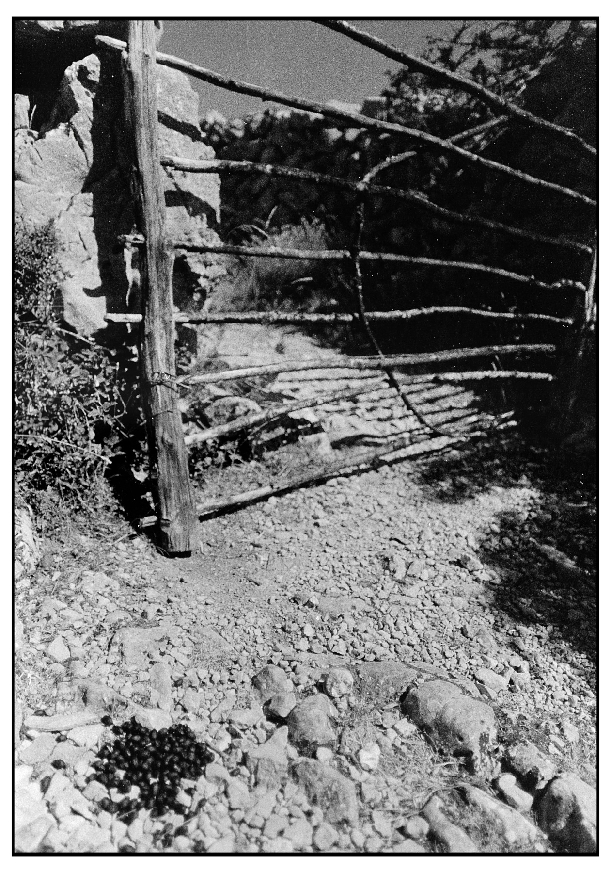 Il secco linguaggio del bianconero limita lo sguardo a ciò che è essenziale nell'immagine: il cancello e il sentiero al di là di esso e il misterioso materiale in primo piano...