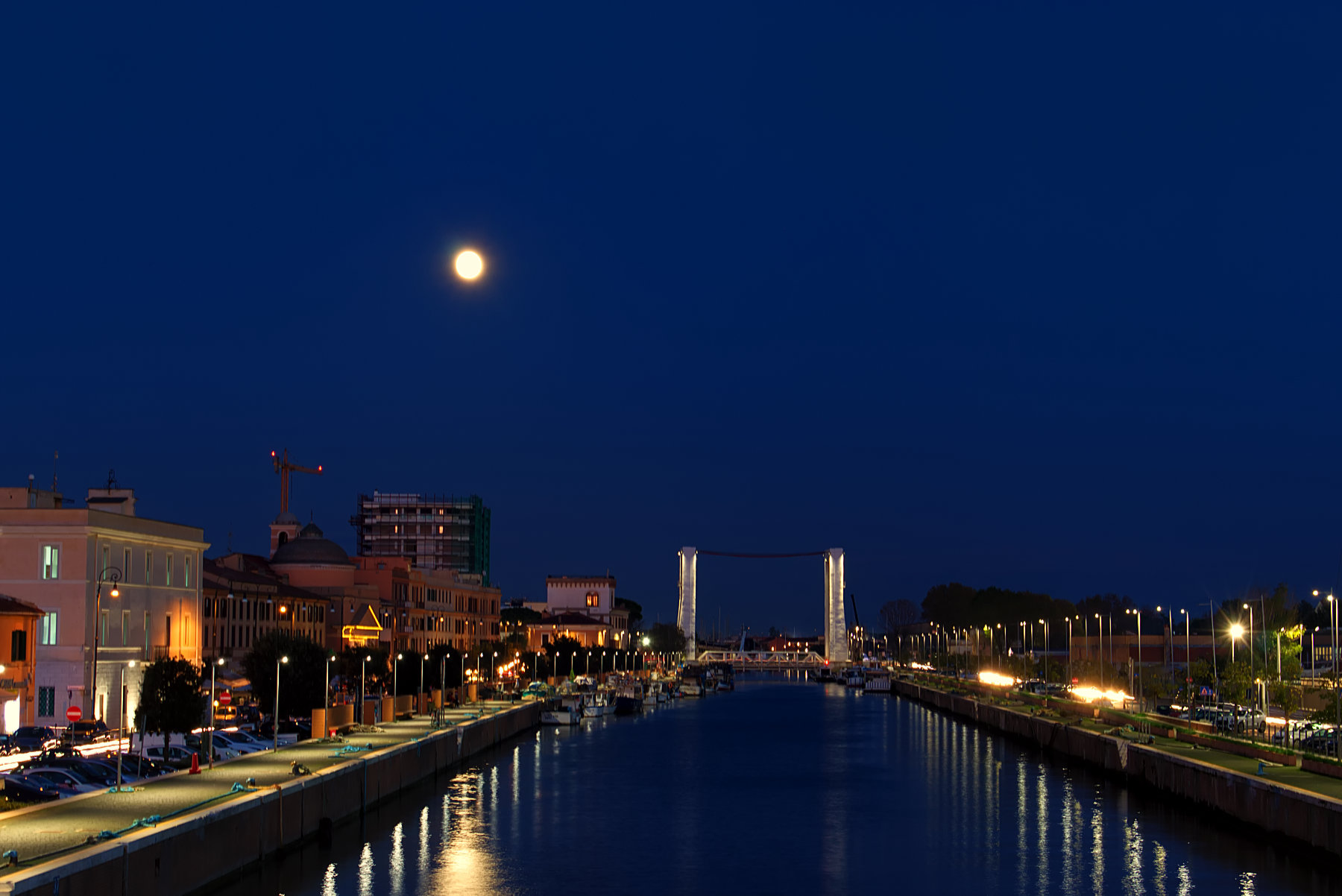 Lo scatto per la profondità, prospettiva mi piace; così anche i contrasti di colore tra luce naturale e artificiale. I riflessi e la luna ingentiliscono lo scatto e apportano valore. Solo avrei fatto partire la strada a dx dall'angolo per renderla più armonica _________________ Giuseppe |