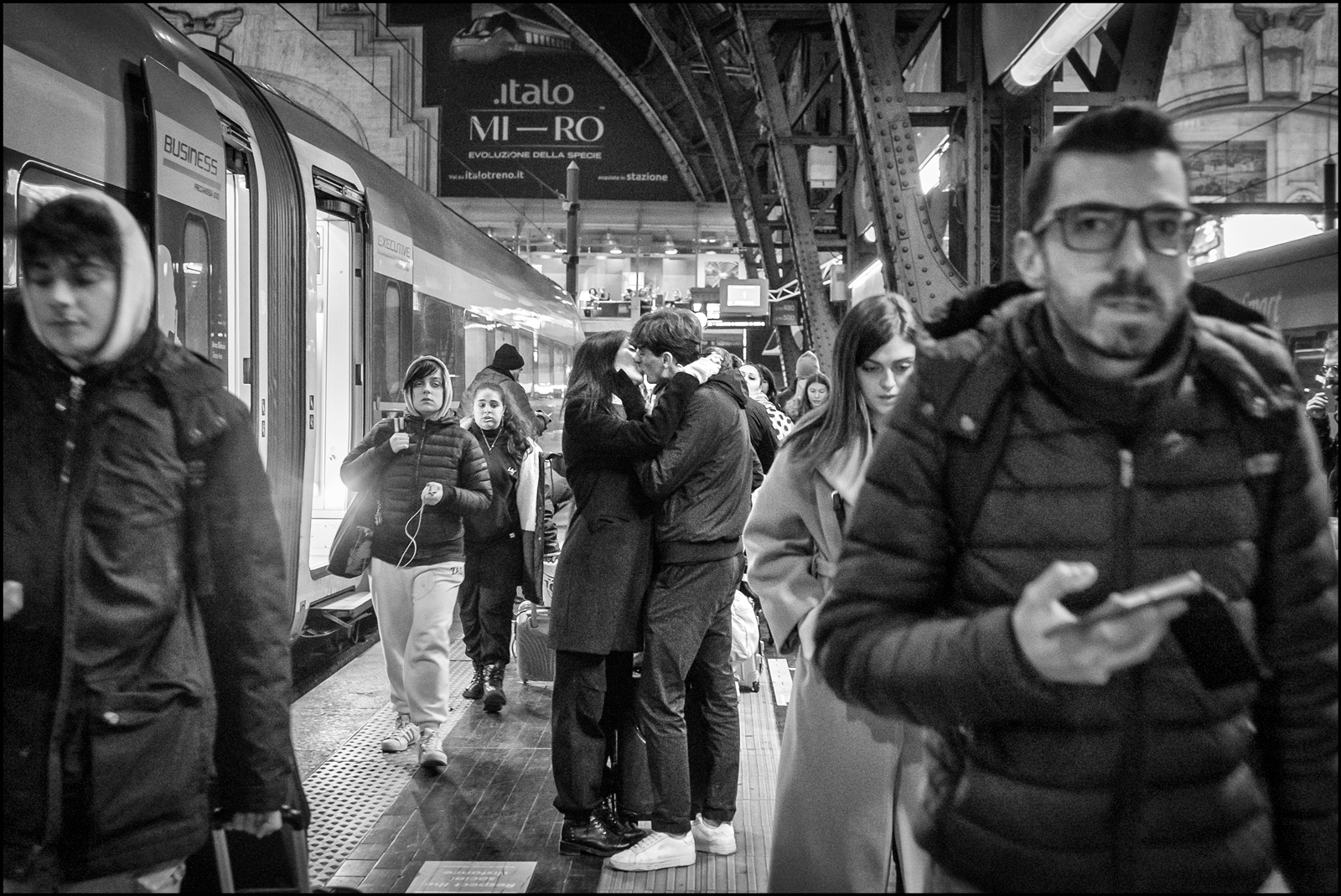 tutti si muovono e solo la coppia di ragazzi immortalati ed isolati in un tenero bacio. Per me una gran foto