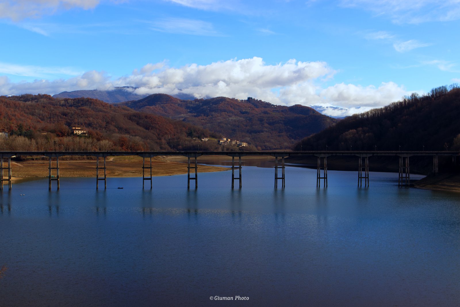 Lo scatto mi piace a partire dal bel colore della distesa d'acqua con i suoi lievi riflessi. Il ponte a metà frame e che si frappone tra il primo piano e lo sfondo, non mi dispiace, introduce delle geometrie in un luogo naturale e arricchisce l'immagine anche grazie ai suoi riflessi.La parte finale merita per i suoi colori, profili e le nuvole che parzialmente coprono le montagne sullo sfondo _________________ Giuseppe |