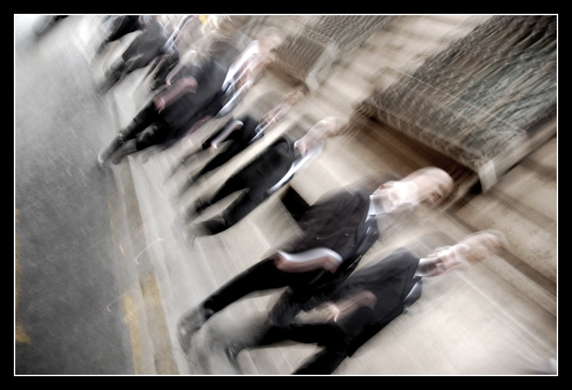 Un'orda di uomini in giacca e cravatta, ho scattato tenendo la macchinetta bassa e...visto che più o meno si riconosce l'abbigliamento vorrei sapere cosa ne pensate(se è troppo mossa, se è troppo storta ecc)