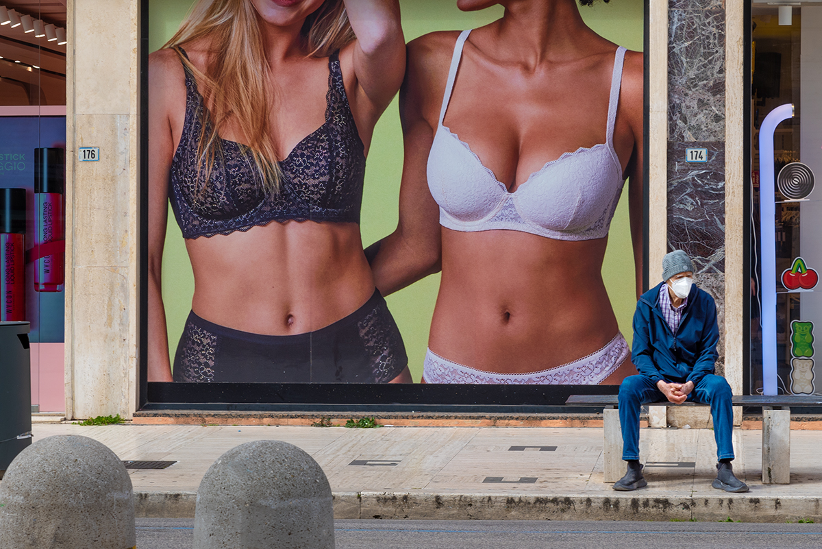 | Una street molto attenta anche alla composizione… Il richiamo al “due” è anche esteticamente molto valido, soprattutto tra le modelle e i dissuasori  Davvero ben fatta, bravissimo!